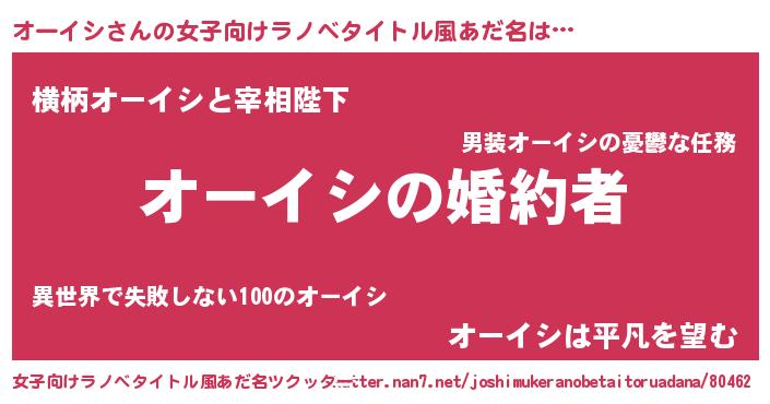 | 男性向けラノベタイトル風あだ名 | 『うちの娘の為ならば、俺はもしかしたらオーイシも倒せるかもしれない。』 |