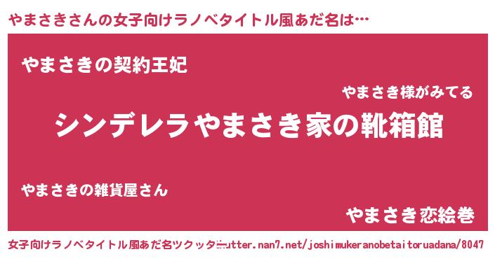 | 男性向けラノベタイトル風あだ名 | 『冴えないやまさきの育てかた』 |