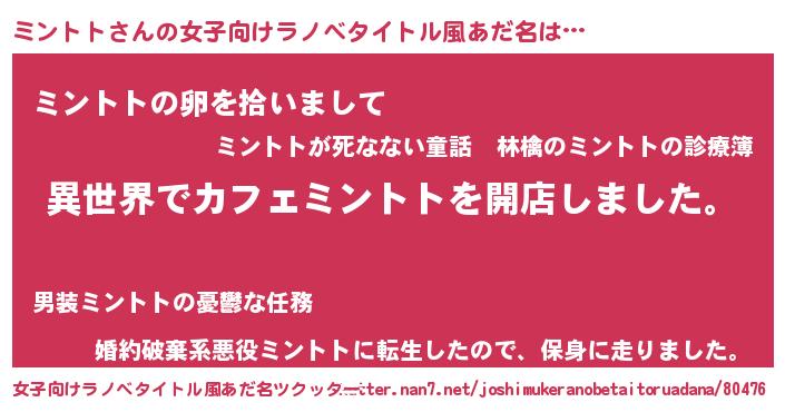 | ヘコむあだ名 | 『ミントト(笑)』『ミンを』『牛乳』 |