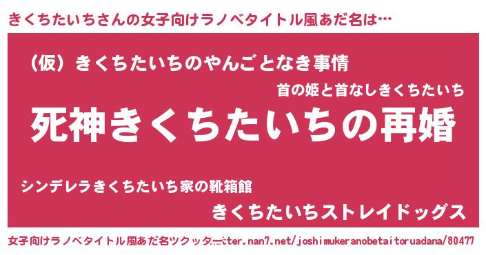 | 男性向けラノベタイトル風あだ名 | 『ノーゲーム・ノーキクチタイチ』 |
