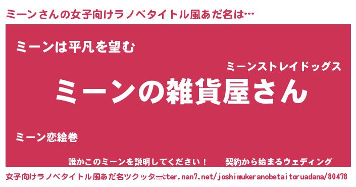 | 男性向けラノベタイトル風あだ名 | 『やはりミーンの青春ラブコメはまちがっている 』 |
