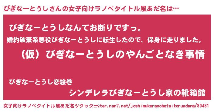 | 胡散臭い通販商品みたいなあだ名 | 『必ず成功する霊験あらたかなお札…その名も「びぎなーとうし」』 |