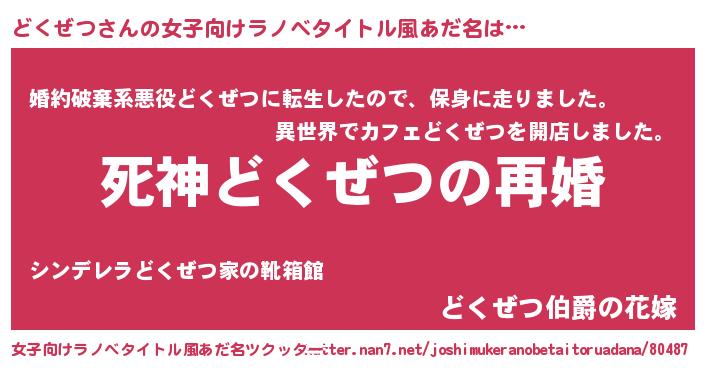 | 男性向けラノベタイトル風あだ名 | 『ノーゲーム・ノードクゼツ』 |