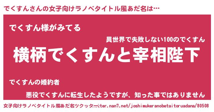 | 男性向けラノベタイトル風あだ名 | 『でくすんに滅ぼされるだけの簡単なお仕事です』 |