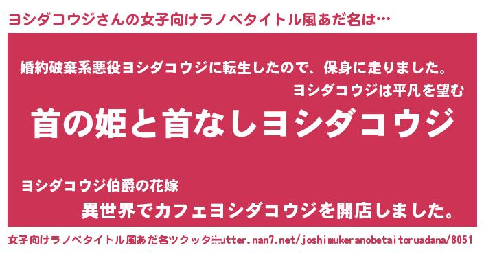 | 男性向けラノベタイトル風あだ名 | 『はたらくヨシダコウジさま!』 |