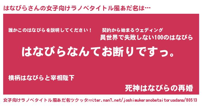 | ヘコむあだ名 | 『はなっふぃ~』『はなびら(遠い目)』 |