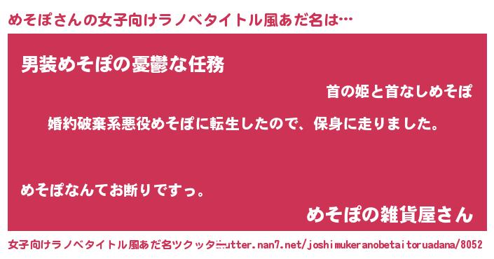| 男性向けラノベタイトル風あだ名 | 『メソポスレイヤー』 |