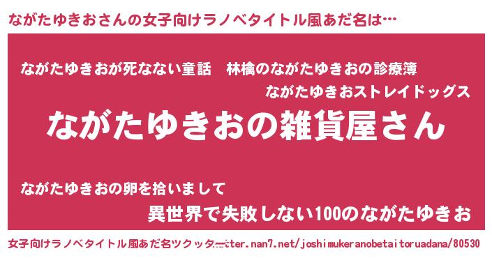| 男性向けラノベタイトル風あだ名 | 『やはりながたゆきおの青春ラブコメはまちがっている 』 |