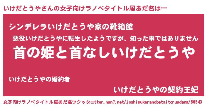 | 胡散臭い通販商品みたいなあだ名 | 『来世でも幸せになれる健康食品…その名も「いけだとうや」』 |