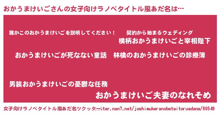 | 胡散臭い通販商品みたいなあだ名 | 『ハリウッド女優が絶賛した100年もののヴィンテージワイン…その名も「おかうまけいご」』 |