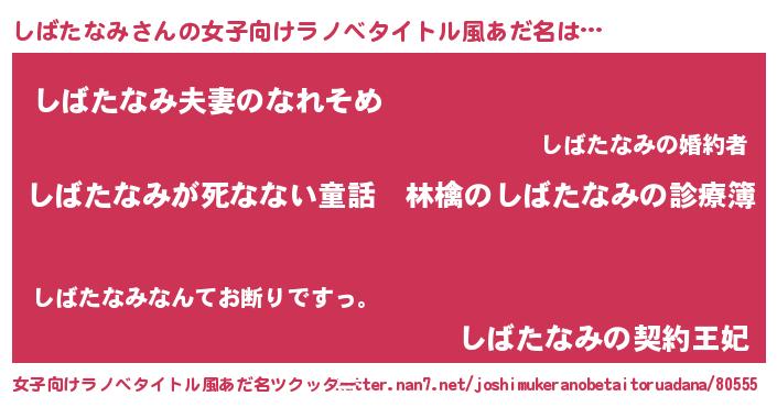 | 男性向けラノベタイトル風あだ名 | 『魔弾の王としばたなみ』 |