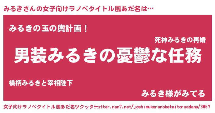 | 男性向けラノベタイトル風あだ名 | 『うちのみるきが世界を掌握している!』 |