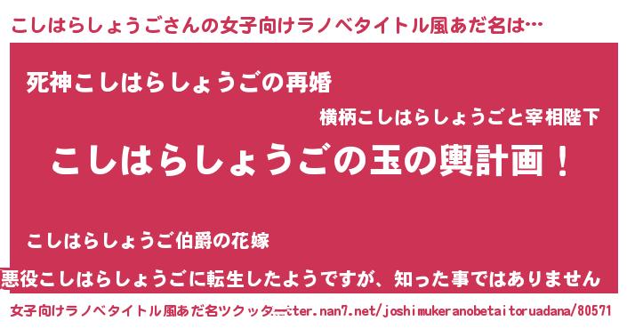 | 男性向けラノベタイトル風あだ名 | 『こしはらしょうご~年齢イコール彼女いない歴の魔法使い~』 |