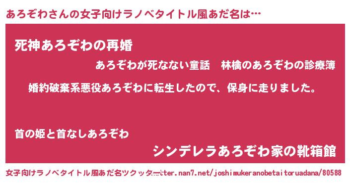 | 胡散臭い通販商品みたいなあだ名 | 『100人中100人が認めたイリジウム磁石…その名も「あろぞわ」』 |