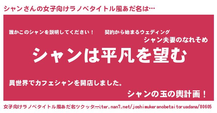 | 男性向けラノベタイトル風あだ名 | 『ダンジョンにシャンを求めるのは間違っているだろうか』 |