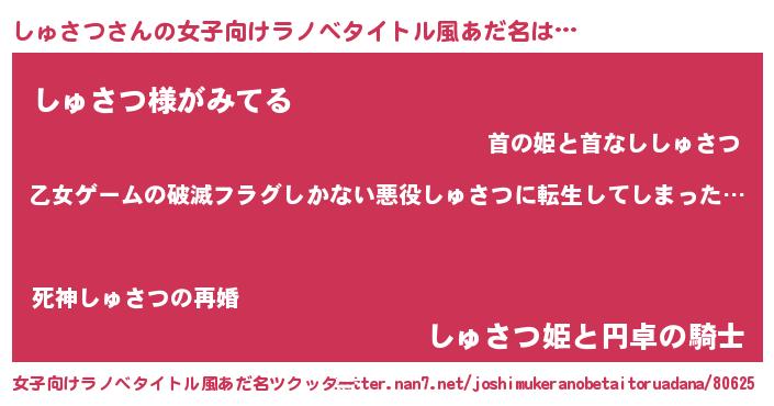 | 胡散臭い通販商品みたいなあだ名 | 『世界中を虜にした100年もののヴィンテージワイン…その名も「しゅさつ」』 |