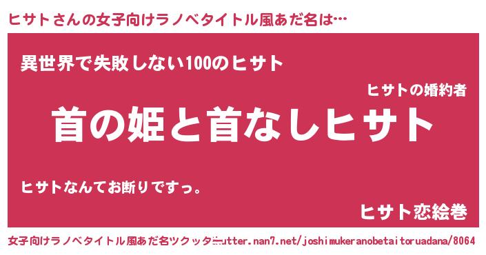 | 男性向けラノベタイトル風あだ名 | 『はたらくヒサトさま!』 |