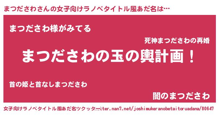 | 男性向けラノベタイトル風あだ名 | 『まつださわ~年齢イコール彼女いない歴の魔法使い~』 |