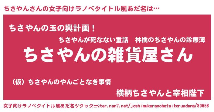 | 欧米人風あだ名 | 『ちさやんクリステル』 |