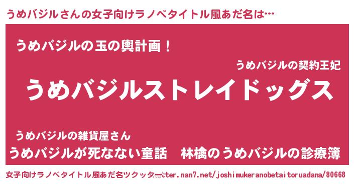 | 意味不明あだ名 | 『自称うめバジル』『永久保存うめバジル』 |
