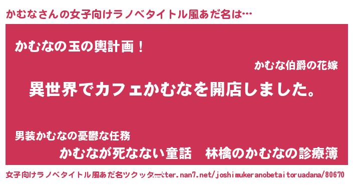 | ヘコむあだ名 | 『かむな(笑)』『なまこ酢』 |