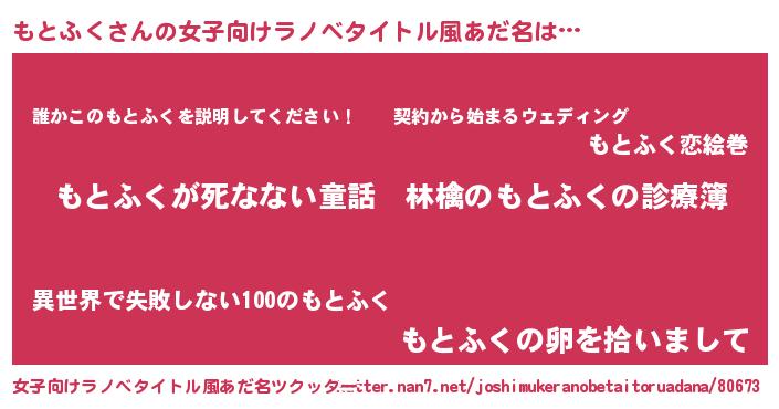| 意味不明あだ名 | 『住所不定無職もとふく(2歳)』 |