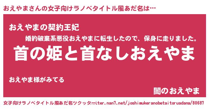 | 胡散臭い通販商品みたいなあだ名 | 『絶対に幸福をもたらす水素水…その名も「おえやま」』 |