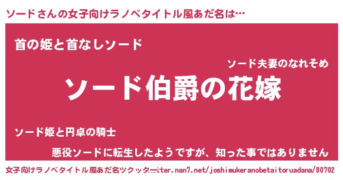 | 男性向けラノベタイトル風あだ名 | 『やはりソードの青春ラブコメはまちがっている 』 |