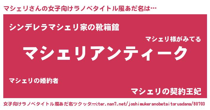 | ヘコむあだ名 | 『マシェリ(笑)』『マシぷりん』 |
