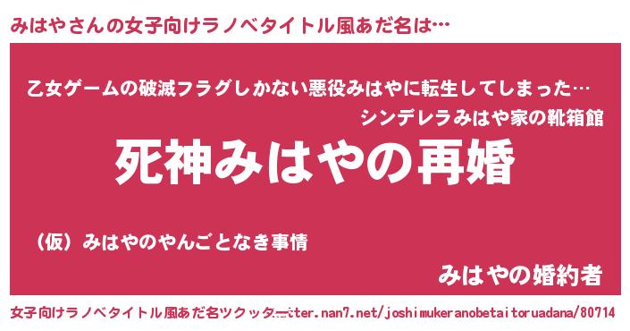 | 男性向けラノベタイトル風あだ名 | 『ノーゲーム・ノーミハヤ』 |