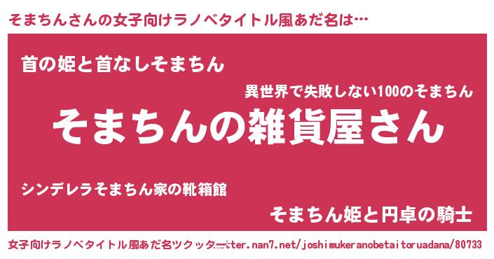 | ヒーロー風カッコイイあだ名 | 『ウルトラそまちんマン』『ネオソマチン』 |