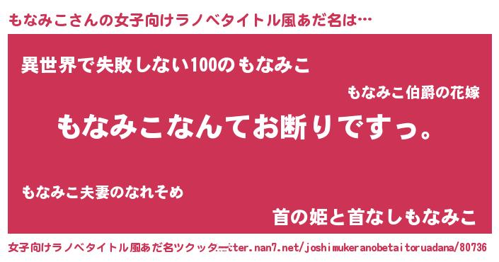 | 意味不明あだ名 | 『自称もなみこ』『永久保存もなみこ』 |