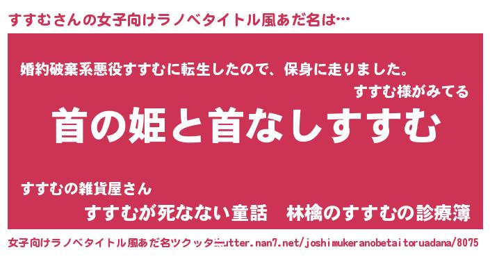 | 胡散臭い通販商品みたいなあだ名 | 『世界中を虜にした100年もののヴィンテージワイン…その名も「すすむ」』 |