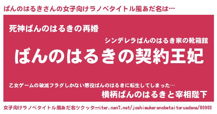 | 胡散臭い通販商品みたいなあだ名 | 『来世でも幸せになれる健康食品…その名も「ばんのはるき」』 |