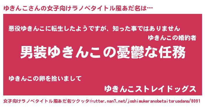 | 意味不明あだ名 | 『住所不定無職ゆきんこ(7歳)』 |