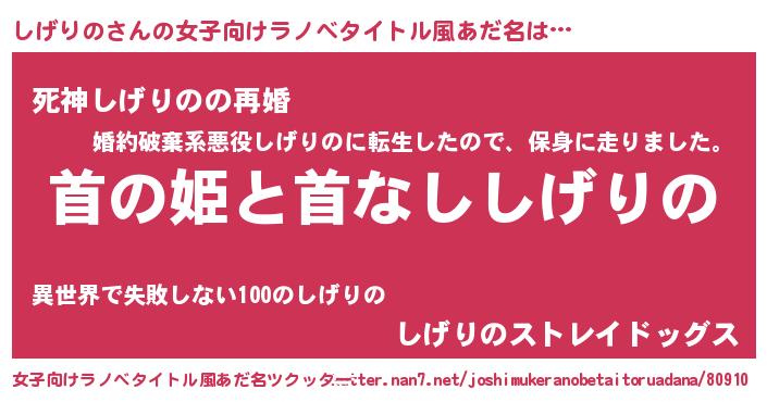 | ヒーロー風カッコイイあだ名 | 『愛の使者しげりの』『究極戦士シゲリノ』 |