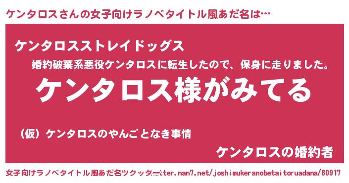 | 男性向けラノベタイトル風あだ名 | 『ケンタロスの嫁は女の子じゃないと思った?』 |