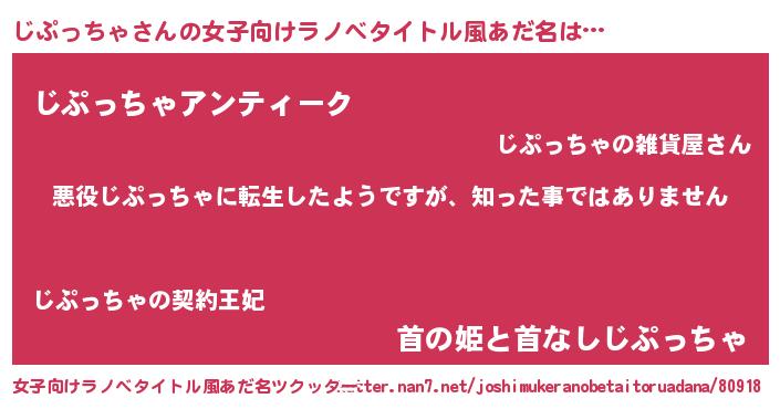| 男性向けラノベタイトル風あだ名 | 『この素晴らしい世界にじぷっちゃを!』 |