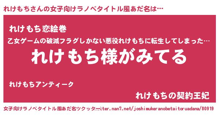 | ヒーロー風カッコイイあだ名 | 『幻影騎士レケ』『慈愛の使者れけもち』 |