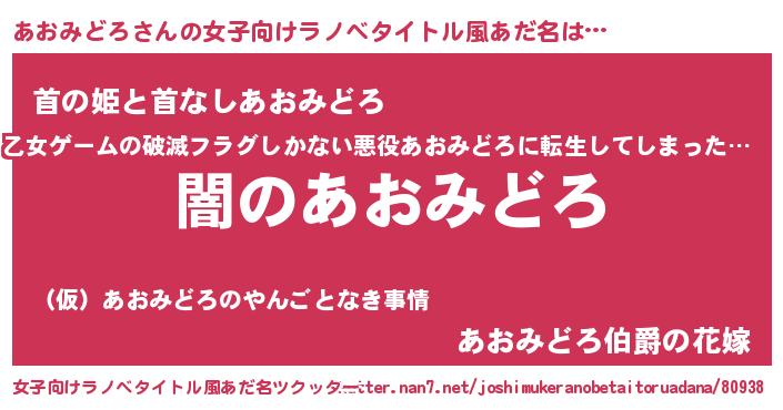 | 男性向けラノベタイトル風あだ名 | 『Re:あおみどろから始める異世界生活』 |