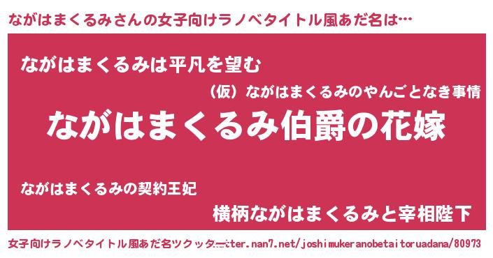 | 欧米人風あだ名 | 『ながはまくるみクリステル』 |