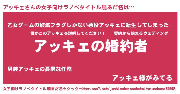 | ファンタジー風あだ名 | 『エターナルアッキェー』『アッフェル』 |