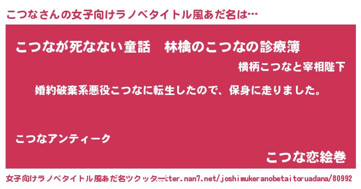 | 男性向けラノベタイトル風あだ名 | 『転生したらこつなだった件』 |