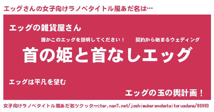 | 胡散臭い通販商品みたいなあだ名 | 『幸せが訪れる高級そうな皿…その名も「エッグ」』 |