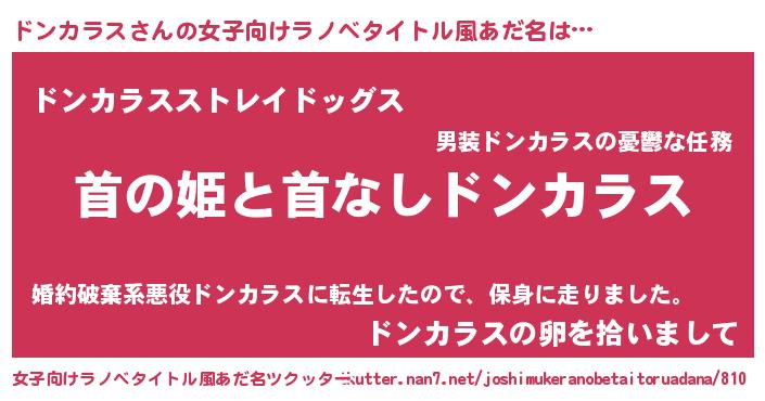 | 意味不明あだ名 | 『自称ドンカラス』『永久保存ドンカラス』 |