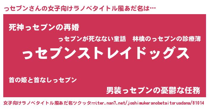 | 男性向けラノベタイトル風あだ名 | 『Re:っセブンから始める異世界生活』 |