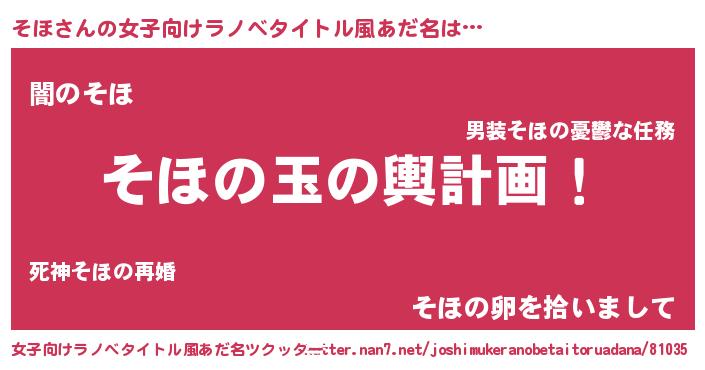 | ヘコむあだ名 | 『そほお』『豆乳』『そほもー』 |
