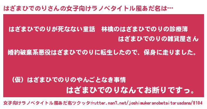 | 男性向けラノベタイトル風あだ名 | 『ハザマヒデノリスレイヤー』 |