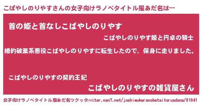 | 男性向けラノベタイトル風あだ名 | 『転生したらこばやしのりやすだった件』 |