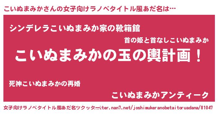 | 男性向けラノベタイトル風あだ名 | 『転生したらこいぬまみかだった件』 |